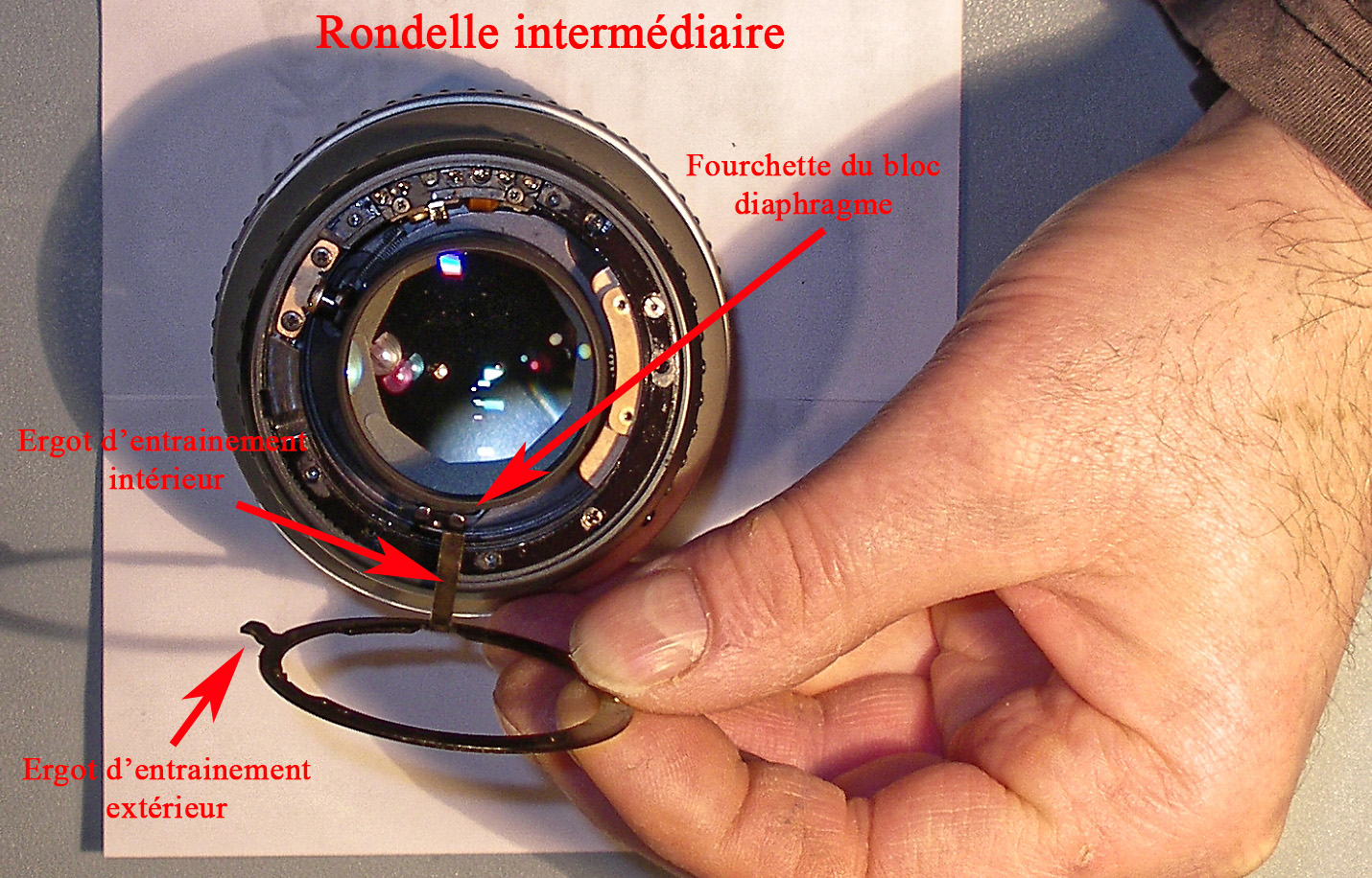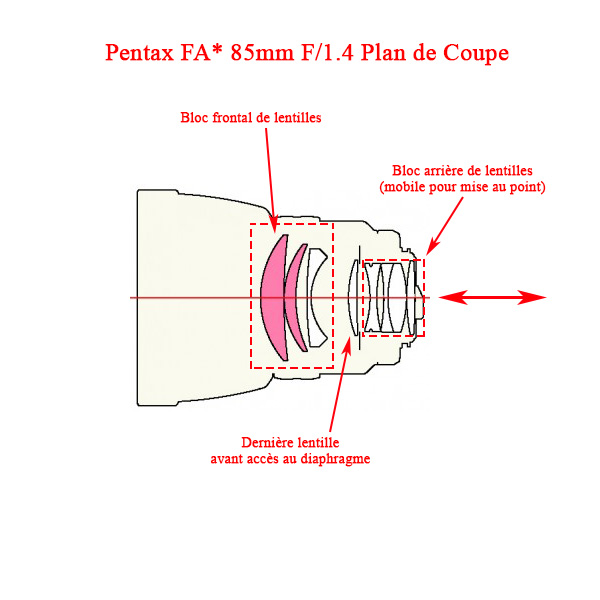 Il faudra aussi nettoyer la lentille en arrière du plan de diaphragme, ce dernier bloqué en pleine ouverture.